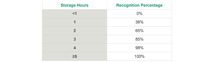 Capacity recognition table for storage
