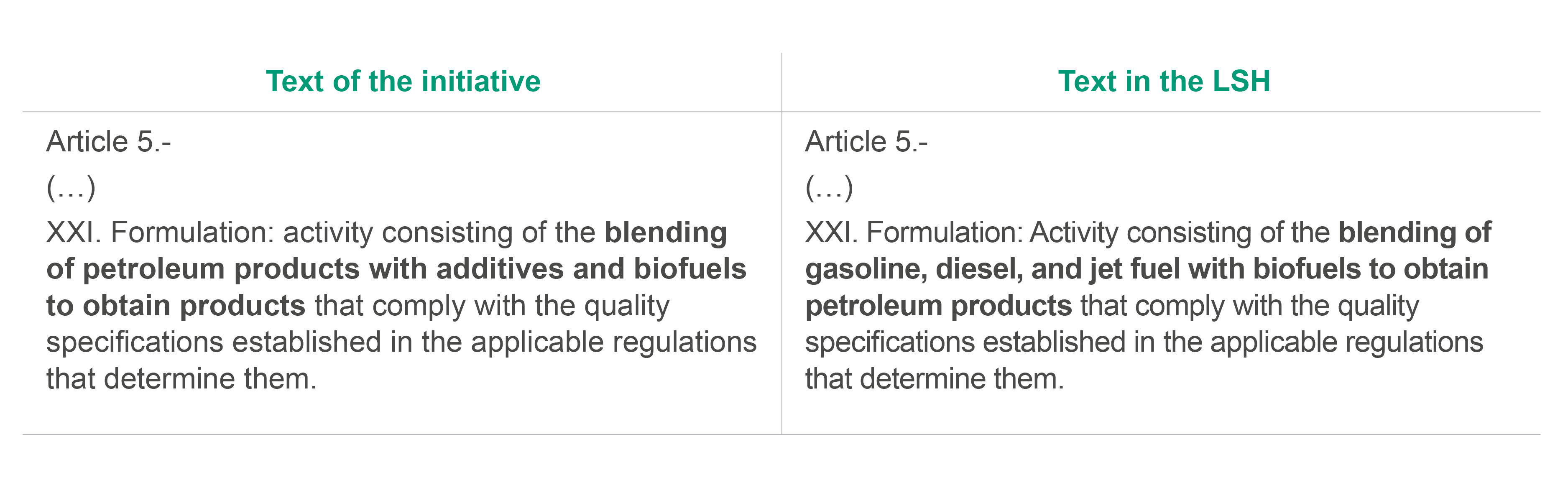 It is worth noting the elimination of the word “additives,” as the definition initially provided in the LSH initiative seemed to indicate that the activity of incorporating additives to petroleum products necessarily fell within the scope of formulation and, as will be detailed below, would therefore require a specific permit from the National Energy Commission (CNE).