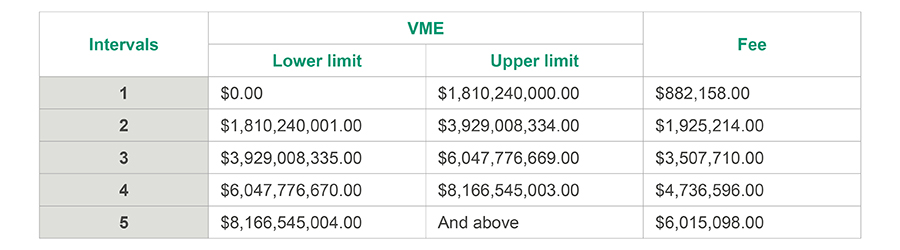 Historically, the economic competition authority in Mexico considered a single fee for the analysis of concentrations, which was calculated using the Measurement and Update Unit (UMA) and increased annually in accordance with the variation of said UMA. However, this new Agreement provides that, in order to determine the fees that agents must pay to the CNA prior to the analysis of the concentration, it is necessary to consider a concept called “Maximum Estimated Value” (VME) of the transaction, in accordance with the following: