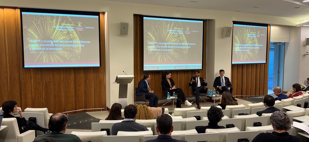 En este contexto, el Observatorio Legaltech & NewLaw Garrigues-ICADE organizó el pasado 24 de enero un evento bajo el título ‘ChatGPT y su potencial impacto en las profesiones legales. Una mirada desde la evaluación ética y jurídica de la innovación’. Los asistentes al encuentro pudieron conocer la opinión de expertos como Albi Rodríguez Jaramillo, consultor de Garrigues y del Observatorio Legaltech & NewLaw Garrigues-ICADE; Natalia Rodríguez, fundadora y CEO de Saturno Labs; César Rosales, project manager de fAIr LAC (BID-LAB); y Moisés Barrio, profesor de Derecho Digital, asesor internacional de regulación y letrado del Consejo de Estado.