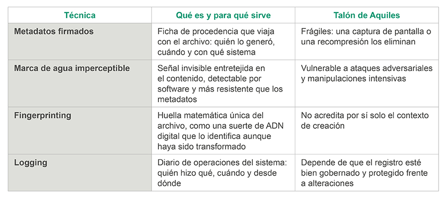 Una cuestión incómoda que el código no resuelve, ni puede resolver solo, el llamado “dividendo del mentiroso”. Así, cuanto más acostumbramos a la sociedad a buscar etiquetas de IA, más fácil puede ser para un actor malicioso negar la autenticidad de algo verdadero explotando la ausencia de etiqueta. Esto nos lleva a tener en cuenta que la transparencia es necesaria, pero también puede convertirse en el telón de fondo para nuevas formas de negación.