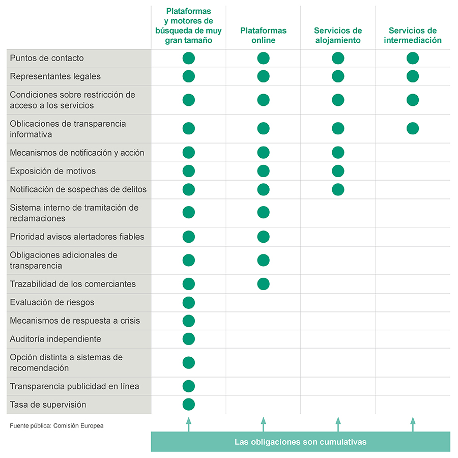 El Reglamento identifica las siguientes obligaciones aplicables a todos los servicios intermediarios: