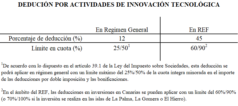 Y a lo anterior se ha de añadir que, si los proyectos de innovación tecnológica se realizasen efectivamente en las Islas Canarias, donde la industria turística se está viendo gravemente dañada por la crisis sanitaria, tales incentivos fiscales se verían considerablemente incrementados si se aplica nuestro Régimen Económico y Fiscal de Canarias (REF), que prevé una deducción del 45% del coste de la inversión realizada en proyectos que se califiquen de innovación tecnológica.