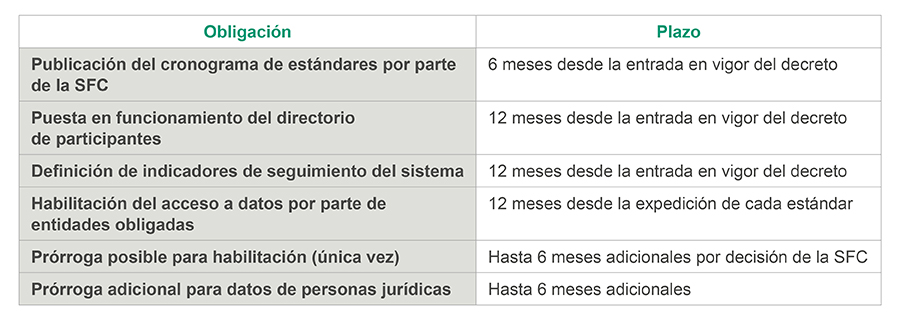 El sistema de finanzas abiertas se define como el conjunto de autoridades, normas, estándares, infraestructuras y participantes que interactúan para permitir el acceso y suministro de datos personales de los clientes de entidades vigiladas por la Superintendencia Financiera de Colombia (SFC), siempre en respeto del consentimiento del titular. Destacan, dentro de los objetivos del decreto, el de impulsar la innovación financiera, la competencia y entrada de nuevos actores al mercado, y la inclusión financiera y crediticia.