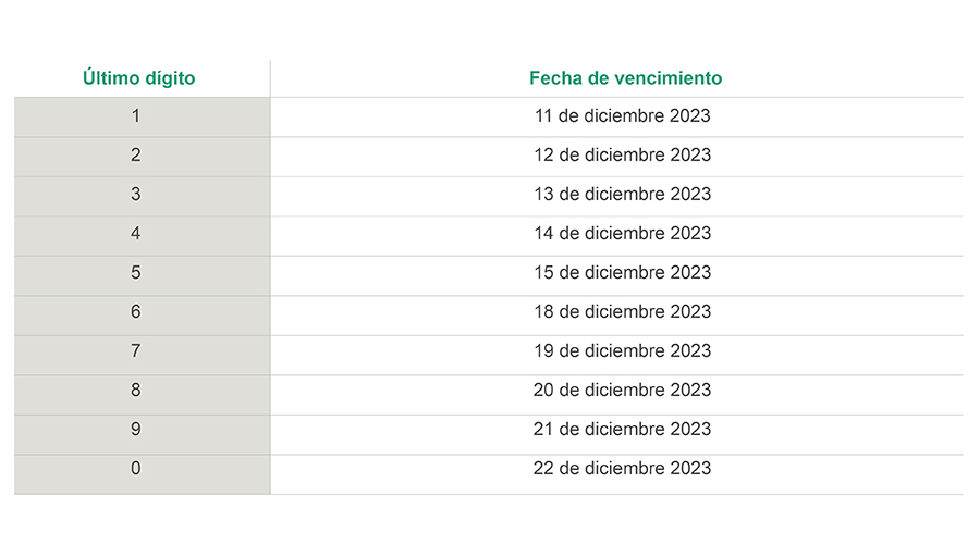La fecha de presentación de la Declaración Informativa y el Informe Local se establece de acuerdo con el último dígito del NIT: