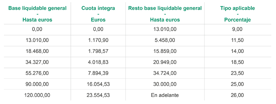 Se ajusta para los ejercicios 2022 y 2023 la escala autonómica del IRPF con dos decimales, quedando la escala como sigue: