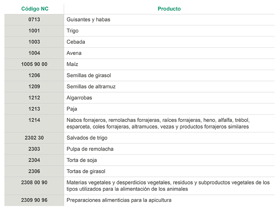 Los bienes a los que se aplicará el tipo cero, siempre que se de alguno de los supuestos anteriores, serán (además de los piensos compuestos) los siguientes: