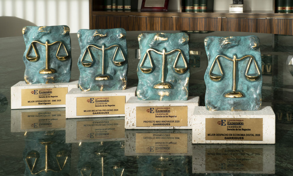Garrigues fue uno de los despachos más laureados en la quinta edición de los Premios Expansión Jurídico a la Excelencia en la Práctica del Derecho de los Negocios del diario Expansión. El despacho ha recibido cuatro premios: Mejor despacho en el sector de la Economía Digital, Proyecto más innovador, Mejor iniciativa Pro Bono y Mejor operación.