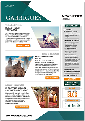 Newsletter correspondiente al mes de abril elaborada por los profesionales del departamento de Derecho Laboral.