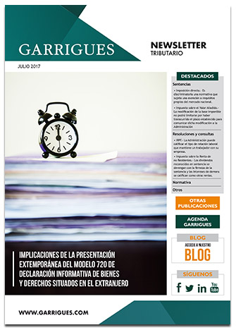 Newsletter correspondiente al mes de julio elaborada por los profesionales del departamento de Derecho Tributario.