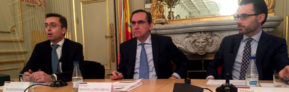 Eloy Castañer e Ismael Viejo, profesionales del departamento Laboral de Garrigues, ejercieron como ponentes junto al secretario general de la Cámara, Manuel López.