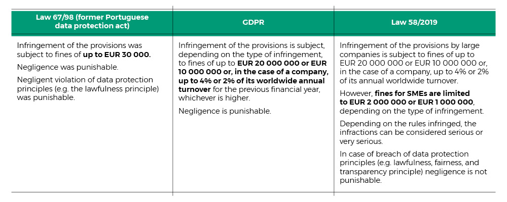 Thirdly, offenses and crimes are, according to some authors, a matter of the exclusive competence of the Portuguese Parliament, so that the rules of the GDPR imposing fines were not directly applicable, hence the need to be transposed by a national normative act.