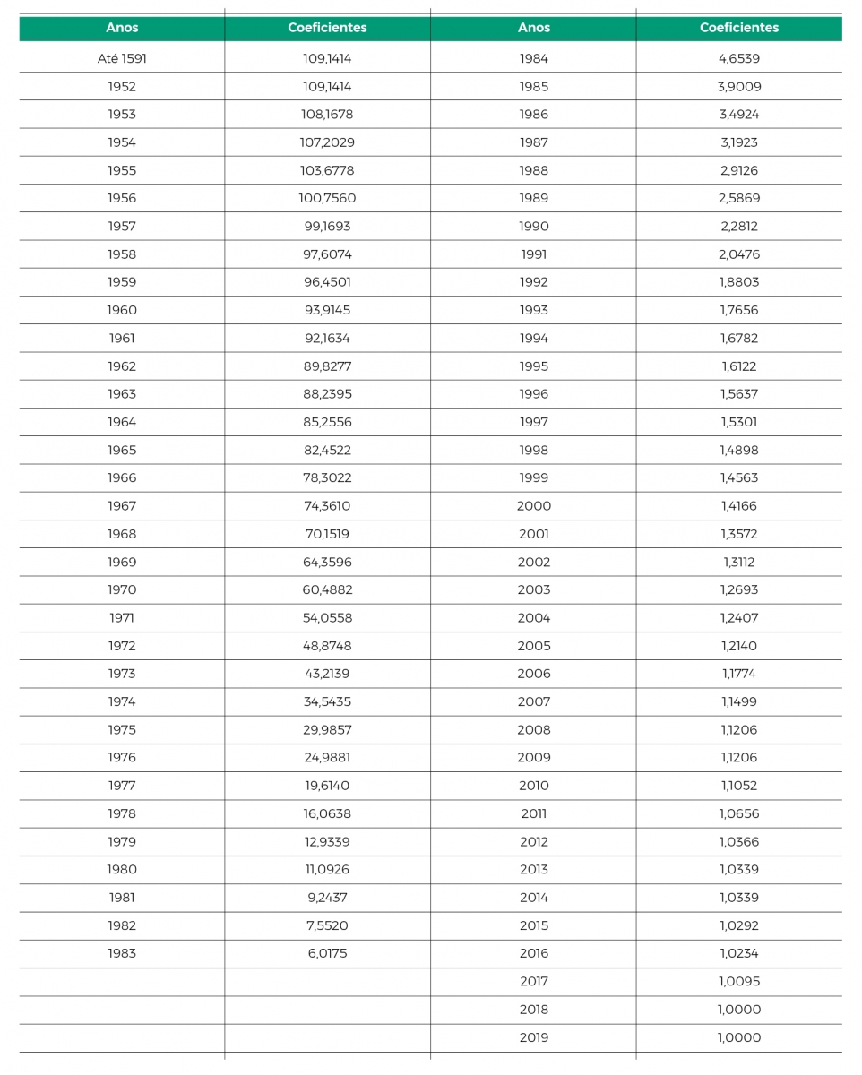 Estes novos valores de coeficientes entram em vigor no próximo dia 09 de fevereiro de 2019 e produzem efeitos de 1 de janeiro a 31 de dezembro de 2019.