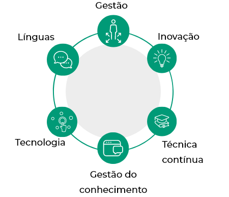 Conjuga sessões presenciais e online sobre os programas e ferramentas de gestão da empresa. Engloba dois módulos de formação, em tecnologia e gestão do conhecimento, assim como, cursos de e-learning sobre as normas da sociedade em determinados domínios.